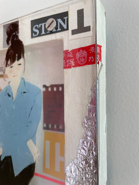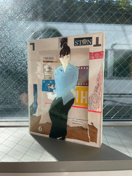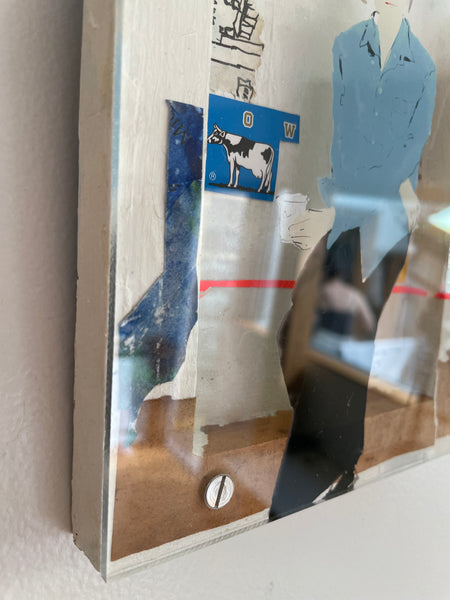 コラージュにUVプリントされたアクリル板が固定してあります。(同じ絵柄のアクリルに新規コラージュの制作も別途可能です。ご希望の方はご連絡ください)