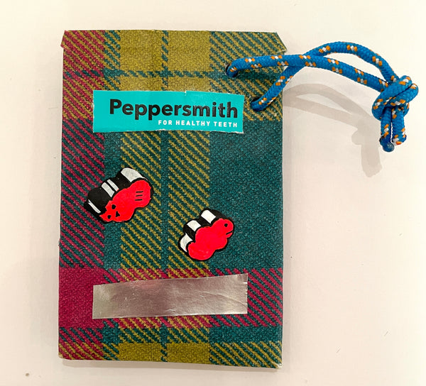 紙を使ってコラージュしたコインケースとなります。可動部分は寒冷紗を使って補強、仕上げに油性ニスを使用しているので紙袋よりは丈夫です。使い続けると削れたり破れたりしてきますが木工ボンドであらたに紙を貼ることで味が出てきます。コインケースにはクレジットカードを入れられるサイズとなっています。マグネットボタン付き