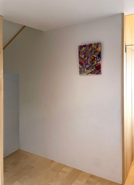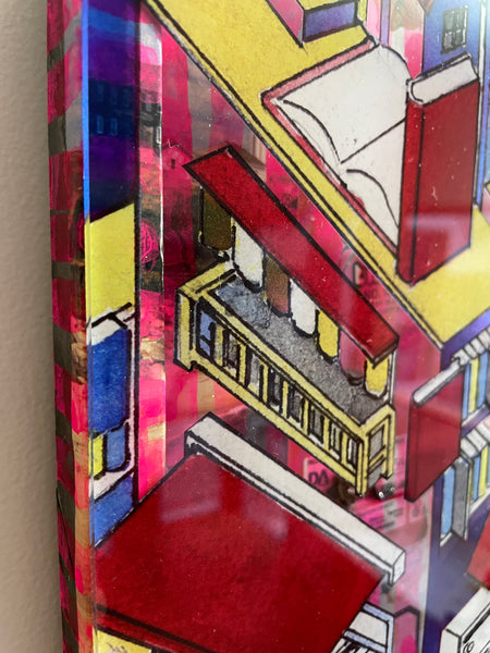 コラージュにUVプリントされたアクリル板が固定してあります。(同じ絵柄のアクリルに新規コラージュの制作も別途可能です。ご希望の方はご連絡ください)