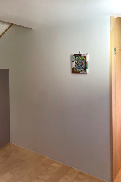 This is UV printed glass on a frame. It is transparent like stained glass.