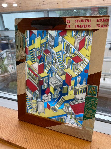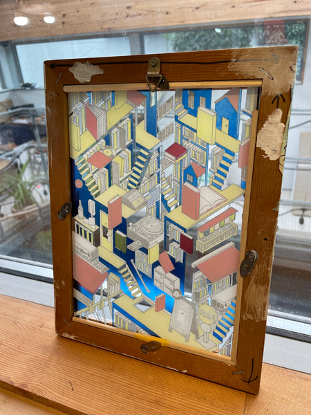 額とUVプリントしたガラスです。ステンドグラスのように透けています。