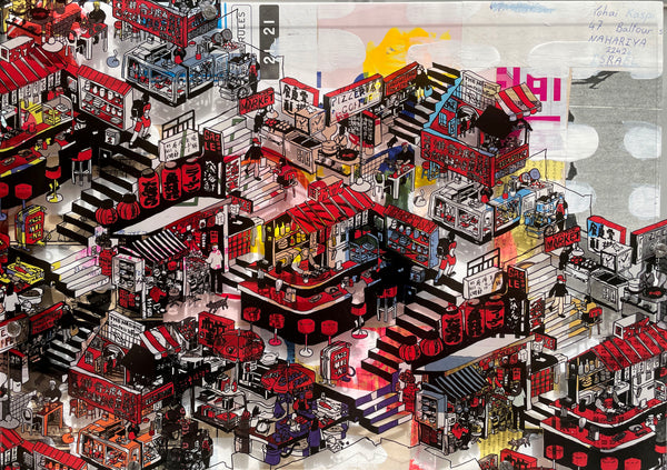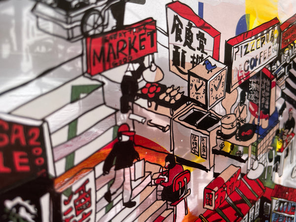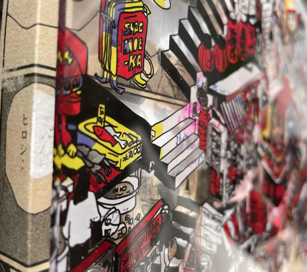 コラージュにUVプリントされたアクリル板が固定してあります。