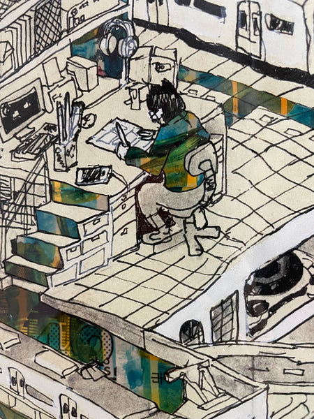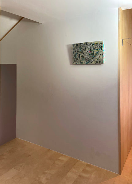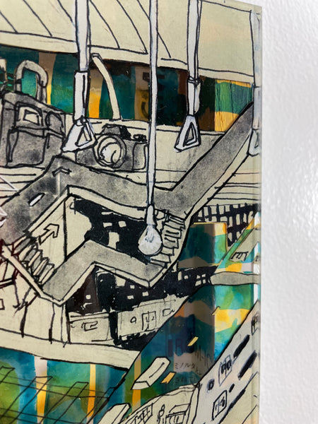 コラージュにUVプリントされたアクリル板が固定してあります。(同じ絵柄のアクリルに新規コラージュの制作も別途可能です。ご希望の方はご連絡ください)
