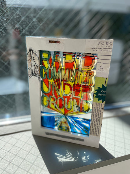 This is UV printed glass on a frame. It is transparent like stained glass.