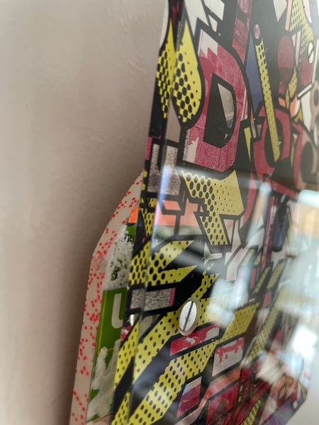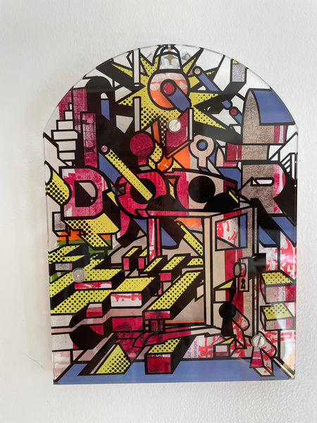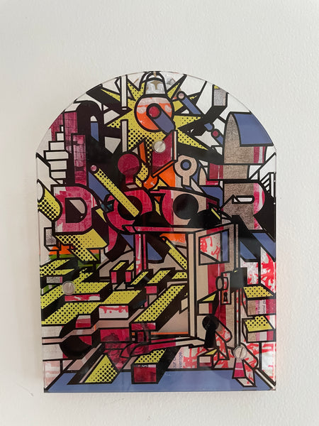 UV printed acrylic panels are fixed to collaged MDF boards.